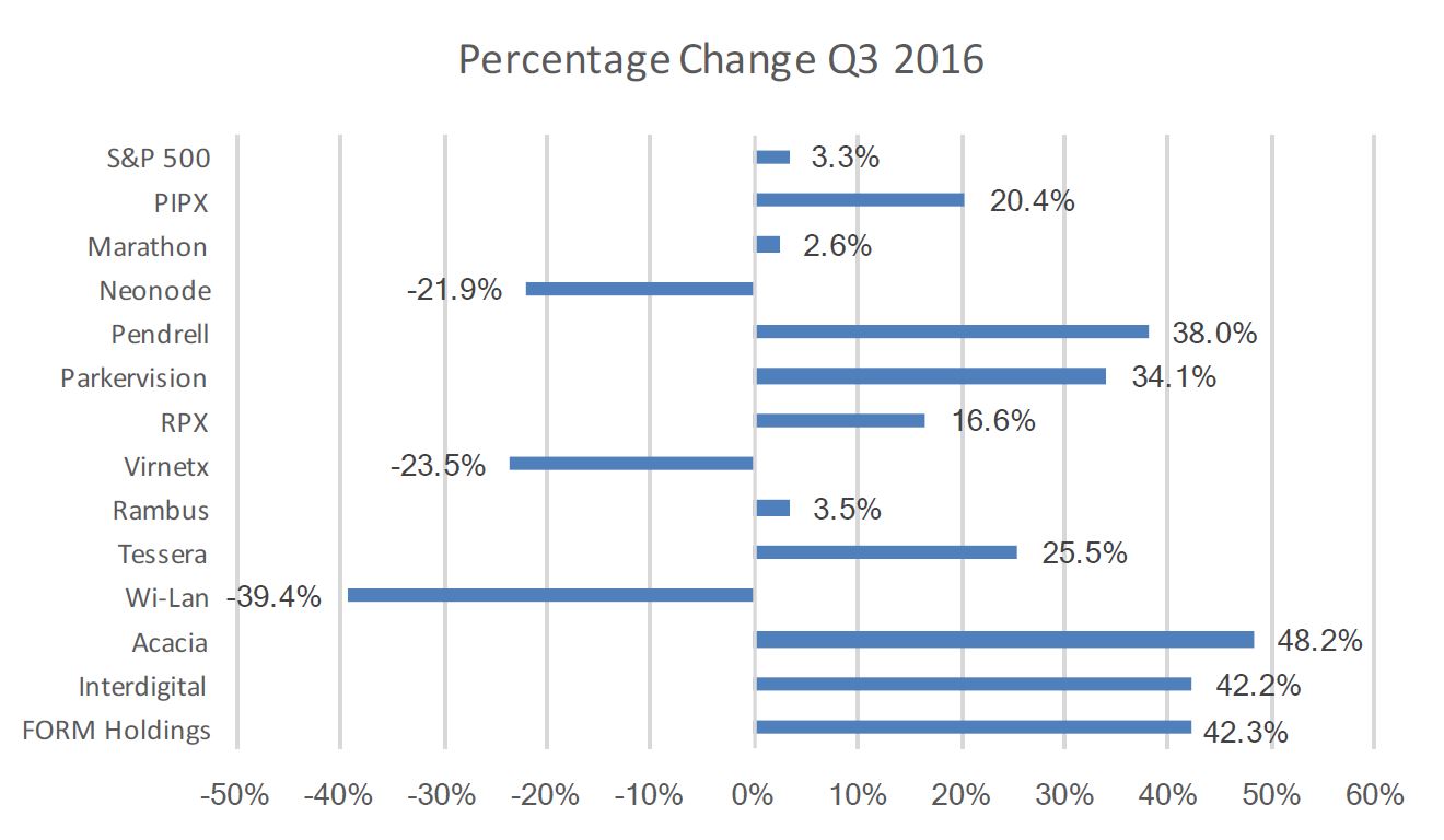 It is difficult to attribute any one specific factor to the record quarter. However, PIPX has been volatile, and somewhat counter-cyclical since its inception. The index could be seen as a hedge against S&P 500 performance. Additionally, patent licensing and sales have started to come back, and patent damages awards are being paid, although at reduced amounts.
