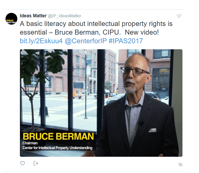 Ideas Matter released a video of interviews with IP experts and holders conducted at the IP Awareness Summit in Chicago. IPAS 2017 was held by the Center for IP Awareness (CIPU) in conjunction with Chicago-Kent College of Law, Illinois Institute of Technology.