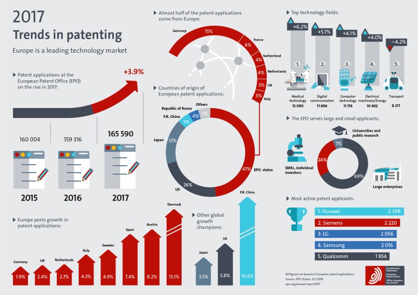 The European Patent Office (EPO) 2017 annual report, recently published, revealed several surprising patent filing trends, including the rapid growth of China .