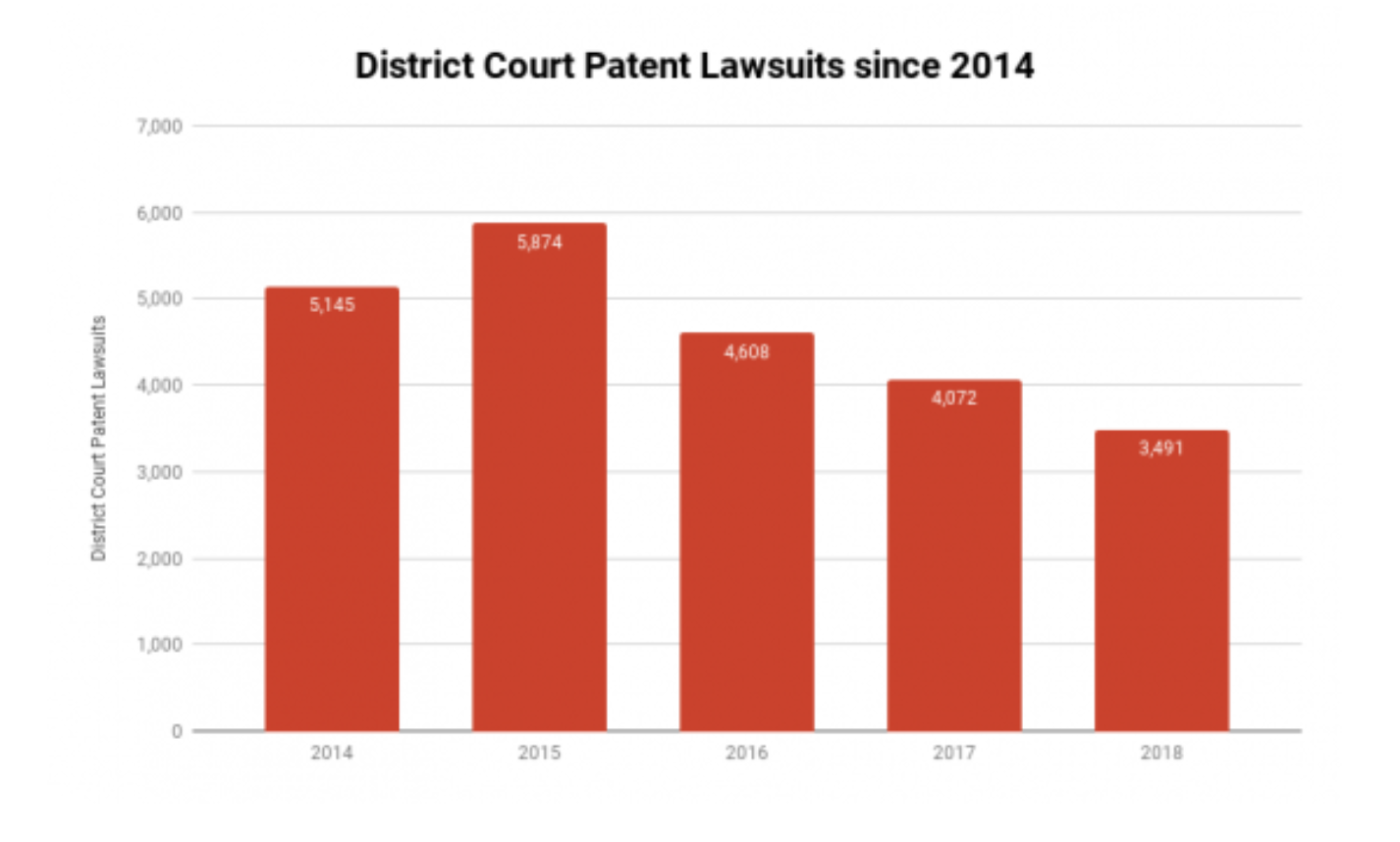 Patent disputes are significantly lower since they peaked at 5,874 in 2015.