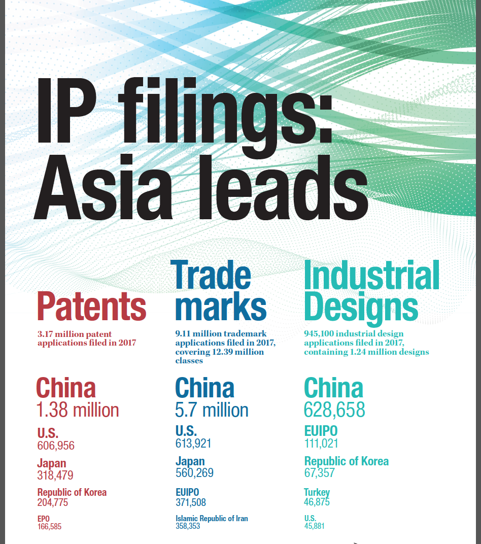 For the full WIPO report, World Intellectual Property Indicators 2018, go here.