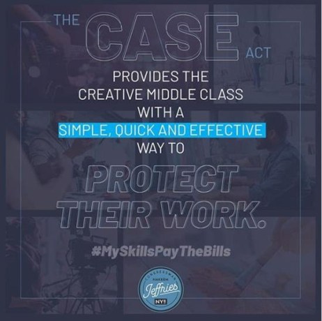 “The establishment of the Copyright Claims Board [with the CASE Act] is critical for the creative middle class who deserve to benefit from the fruits of their labor,” said Rep. Jeffries. “Copyright enforcement is essential to ensure that these artists, writers, musicians and other creators are able to commercialize their creative work in order to earn a livelihood.
