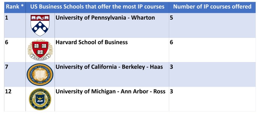 Graduate business students at top-20 universities in the United States do not have to take a single course to fulfill the core requirements for an MBA. IP course offerings remain elective at all of the leading business programs.
