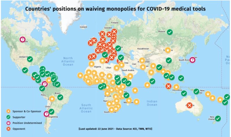 Position on eliminating ‘monopolies’ on medical discoveries by nation (2021).