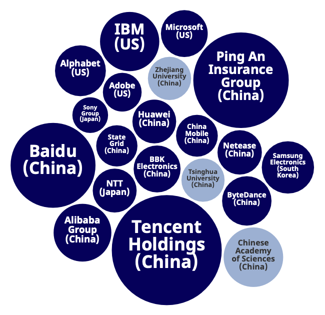 The WIPO report shows that six of the top ten GenAI grantees are based in China – Tencent, Ping An Insurance, Baidu, Chinese Academy of Sciences, Alibaba Group and Bytedance. Only three are U.S. businesses: IBM, Alphabet and Microsoft.