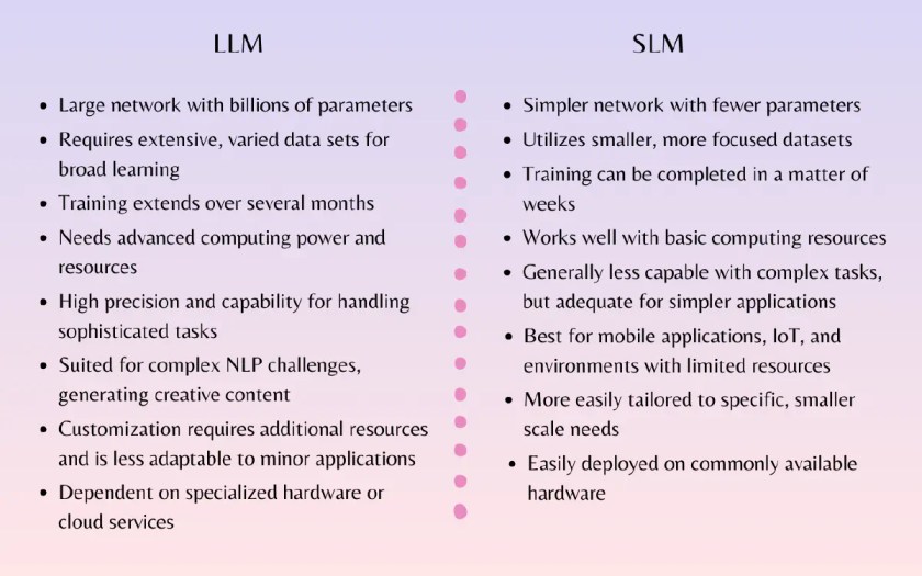 Small models are typically deployed for jobs such as answering customer questions about a certain product, summarizing sales calls, or drafting marketing emails. They can be more computationally efficient and faster than LLMs due to their small size and higher-quality, more targeted data.