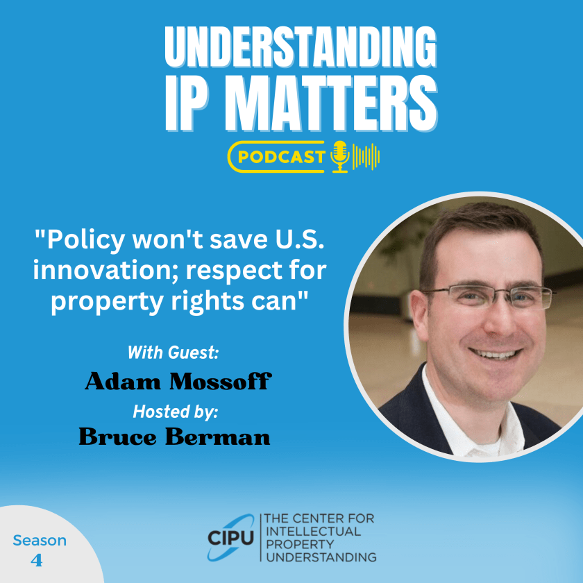 Mossoff spoke recently to host Bruce Berman on the popular ‘Understanding IP Matters’ podcast, in an episode that dropped a few days ago.