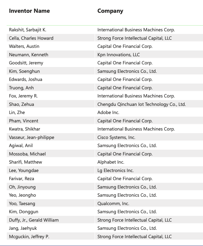 Among top AI inventors, Capital One had an amazing seven in the top 19. Samsung had six in the top 25.