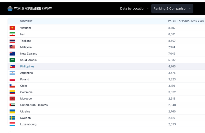 World Population Review’s “World Intellectual Property Indicators by Country 2025” is a strangely useful resource. It shows patent applications for 2023, which are an even less reliable indicator than those granted, are growing rapidly in some nations, with filing up 100% or more.