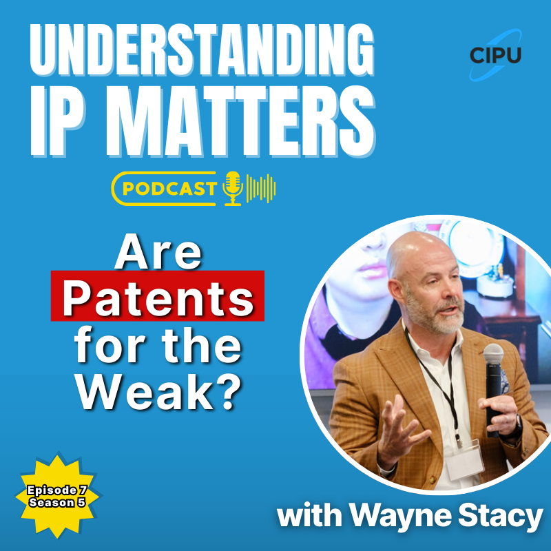 Wayne Stacy is my guest on Ep7 of Understanding IP Matters, the popular podcast the engages with innovation leaders, now on both audio and video. The episode is in part a response to Elon Musk epiphany about certain IP rights: “Are Patents for the Weak?” In fact, explains Stacy, historically they have been more important to many smaller, less capitalized companies that rely on the exclusivity of their rights to level the playing field and attract investors. Unfortunately, that is no longer working as it had.