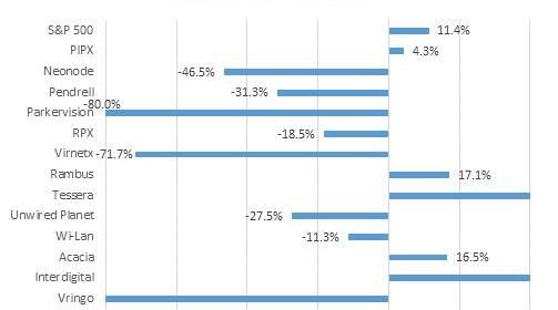 Size helped in 2014 when it came to public IP licensing company stock performance, but it did not assure success. As a group, the twelve