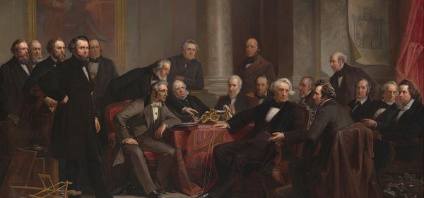 A group portrait honoring America’s rich invention history captures its greatest inventors in a moment in time that never occurred. The painting hangs in