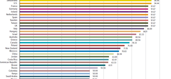 While the U.S. still remains the top nation overall for intellectual property rights, lags behind Singapore, Japan, South Korea and Switzerland in the category Patents,