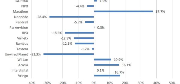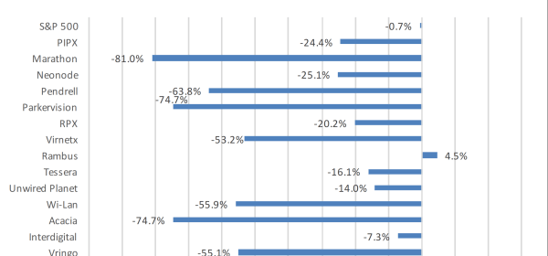 While the S&P 500 stock market index was up 6.5% for the 4Q 2015, the PIPX (public IP licensing company index) was down 11%. 2015