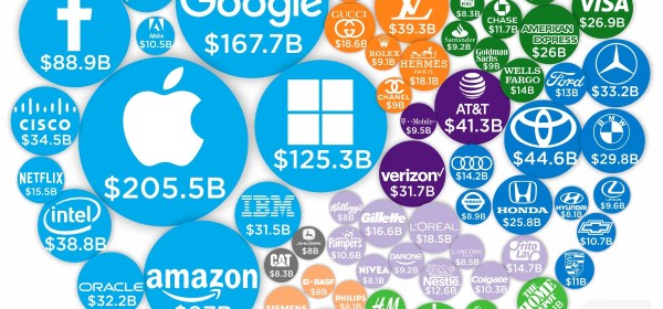 The 100 top global brands, led by technology companies, are up 8% over last year and are worth a cumulative $2.33 trillion. It’s no surprise